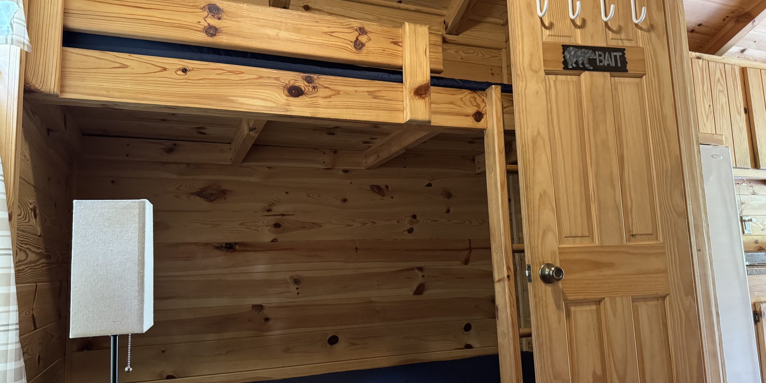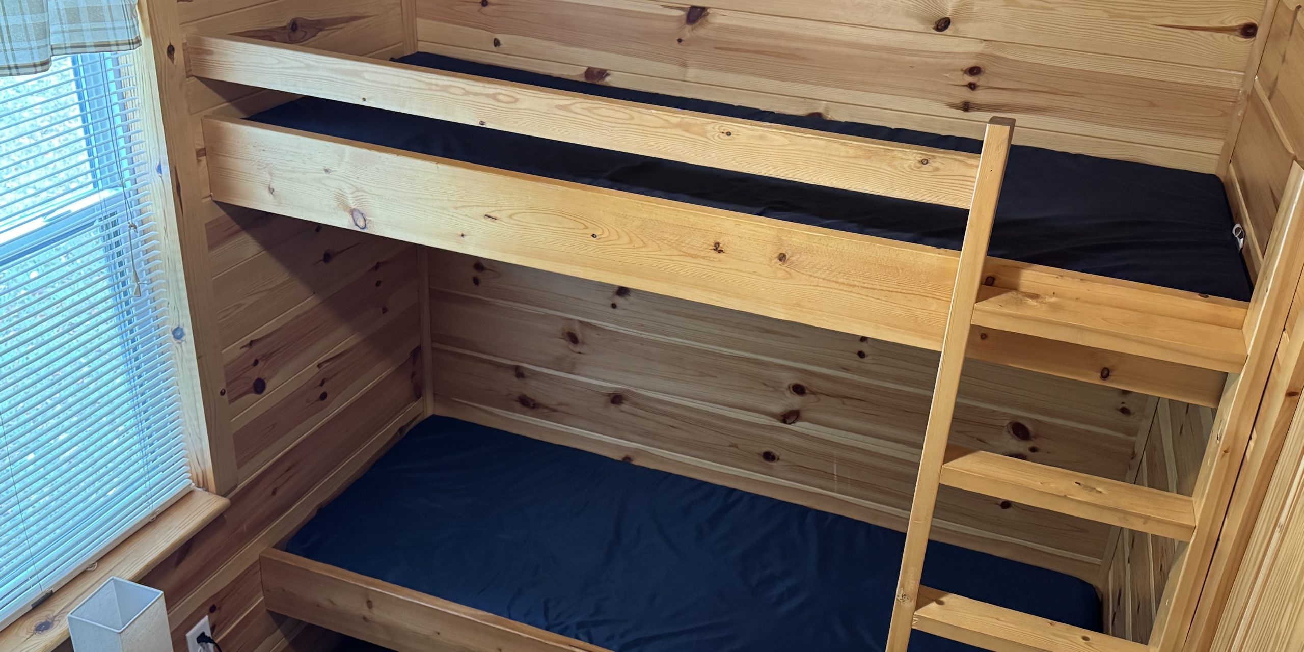 Deluxe Cabins: Offer a queen size bed, a bunk over it, and an additional set of bunk beds. A full kitchen with a stove.