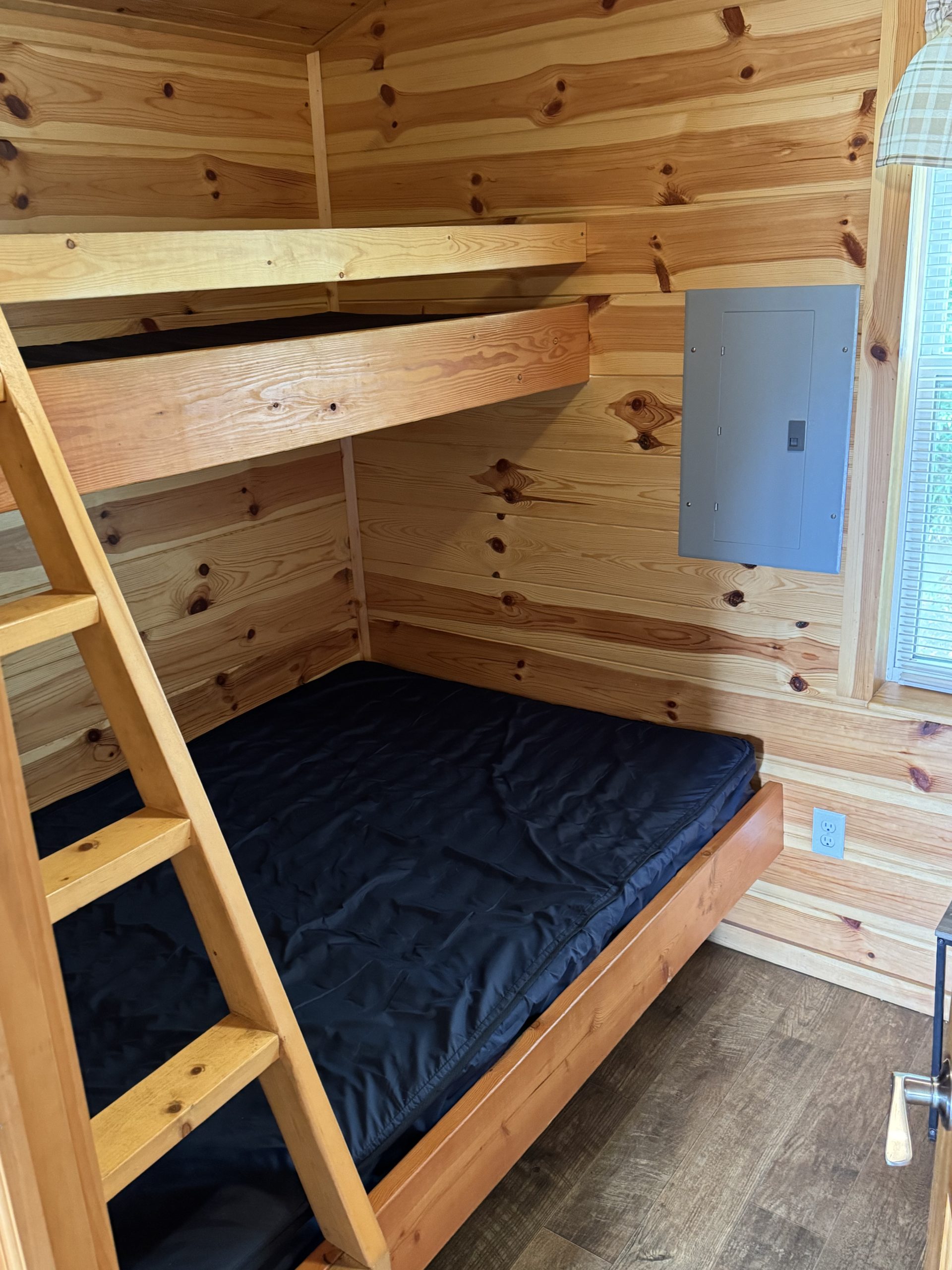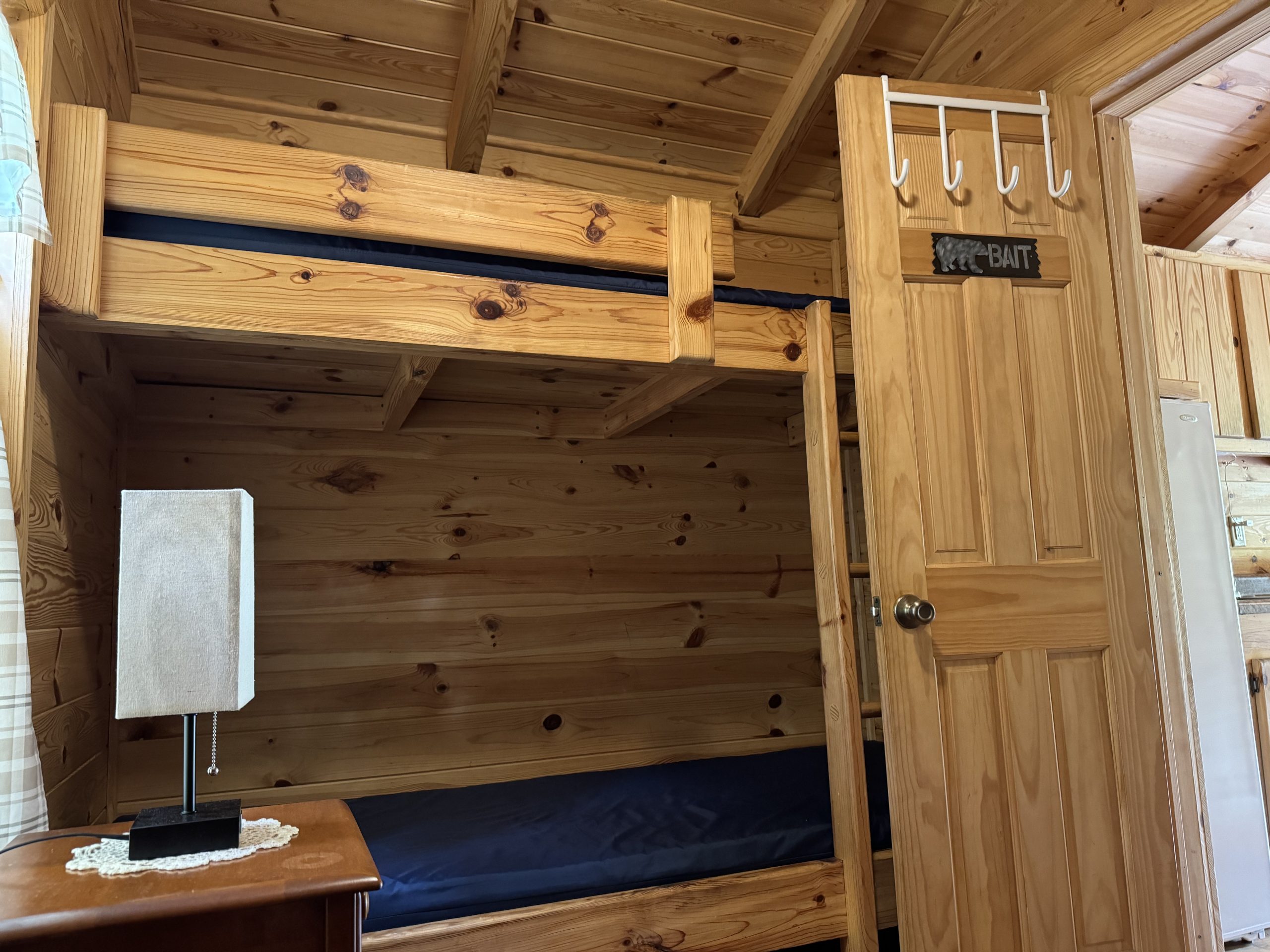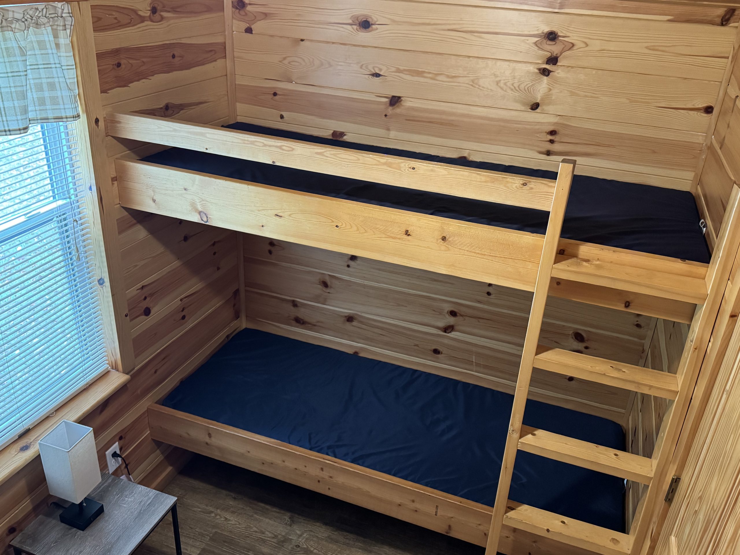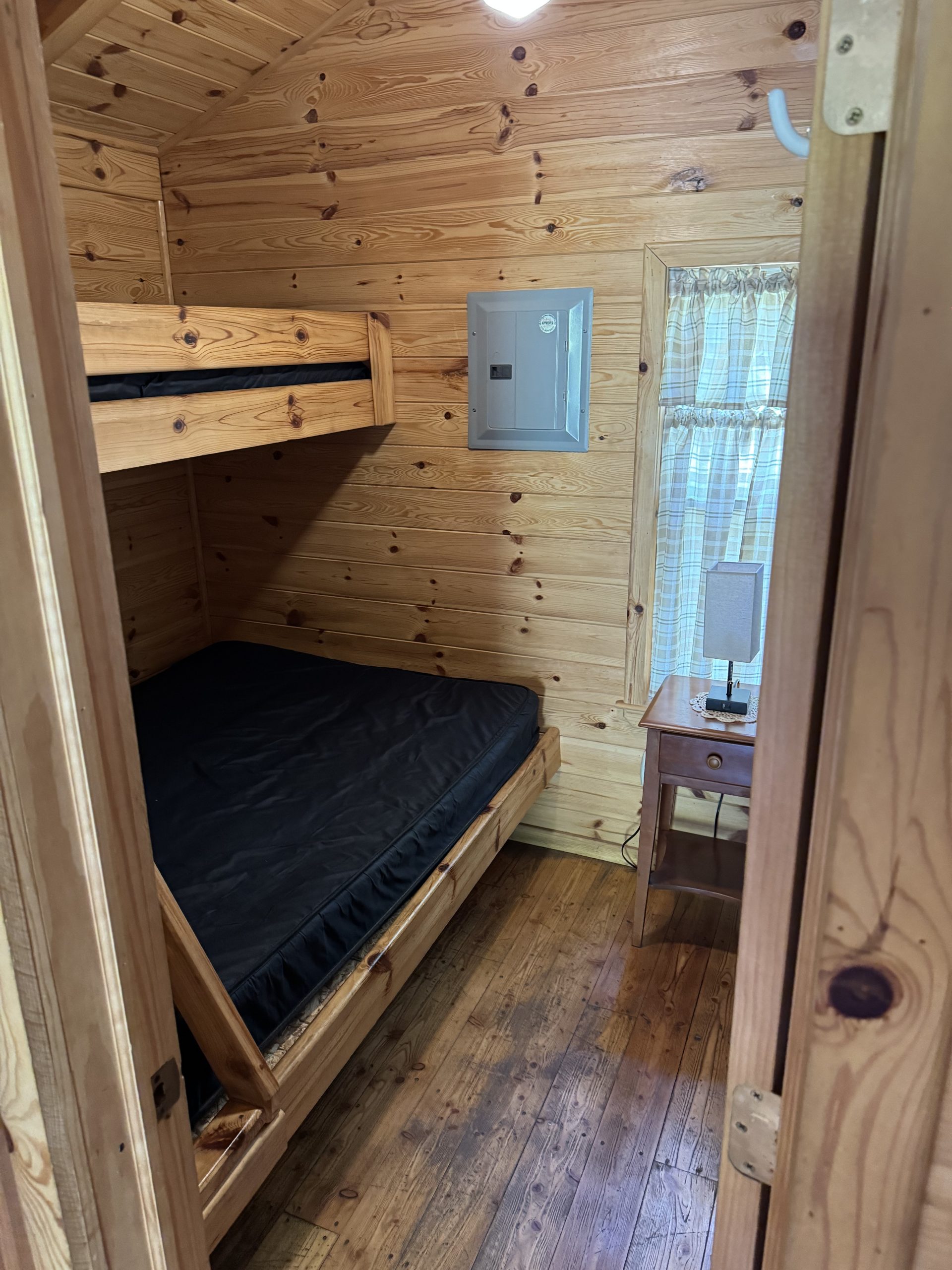 Deluxe Cabins: Offer a queen size bed, a bunk over it, and an additional set of bunk beds. A full kitchen with a stove.