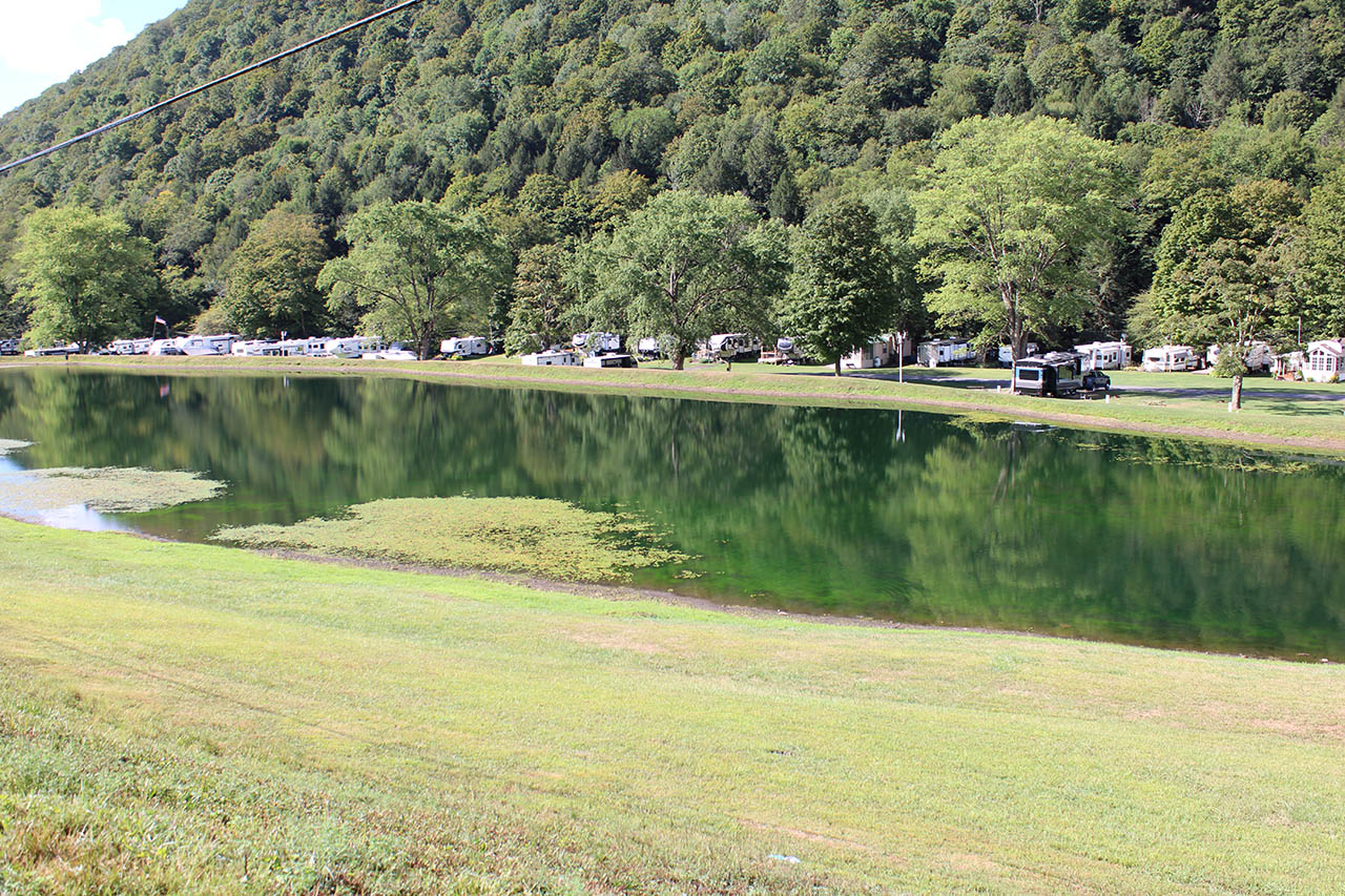 A: Fishing in our stocked pond does not require a license, but a Pennsylvania license is needed if you fish in Stony Fork Creek or nearby streams.